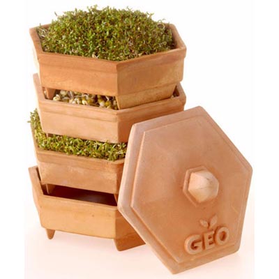Născut din arta şi experienţa meşteşugarilor toscani, germinatorul TerradiSiena este cel mai recent produs al firmei GEO. Un sistem inovator de stivuire vă permite distanţaţi tăvile individual fie să pentru a crea un mediu întunecat şi umed, fie pentru a permite intrarea aerului şi a luminii în tăvi. Teracota naturală îmbunătăţeşte menţinerea unui mediu umed pentru seminţe, precum şi designul frumos care arată foarte bine în orice decor.